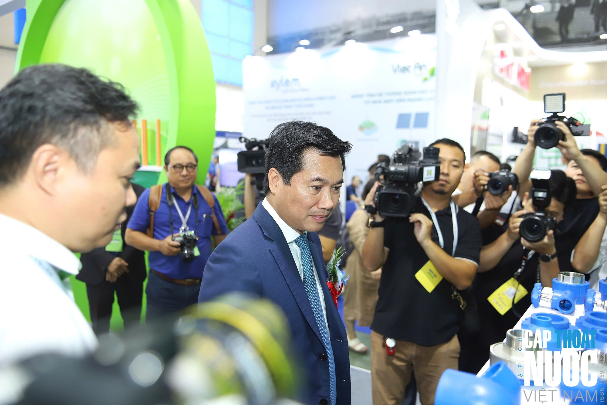 Thứ trưởng Bộ Xây dựng Nguyễn Tường Văn thăm các gian hàng tại khu triển lãm.