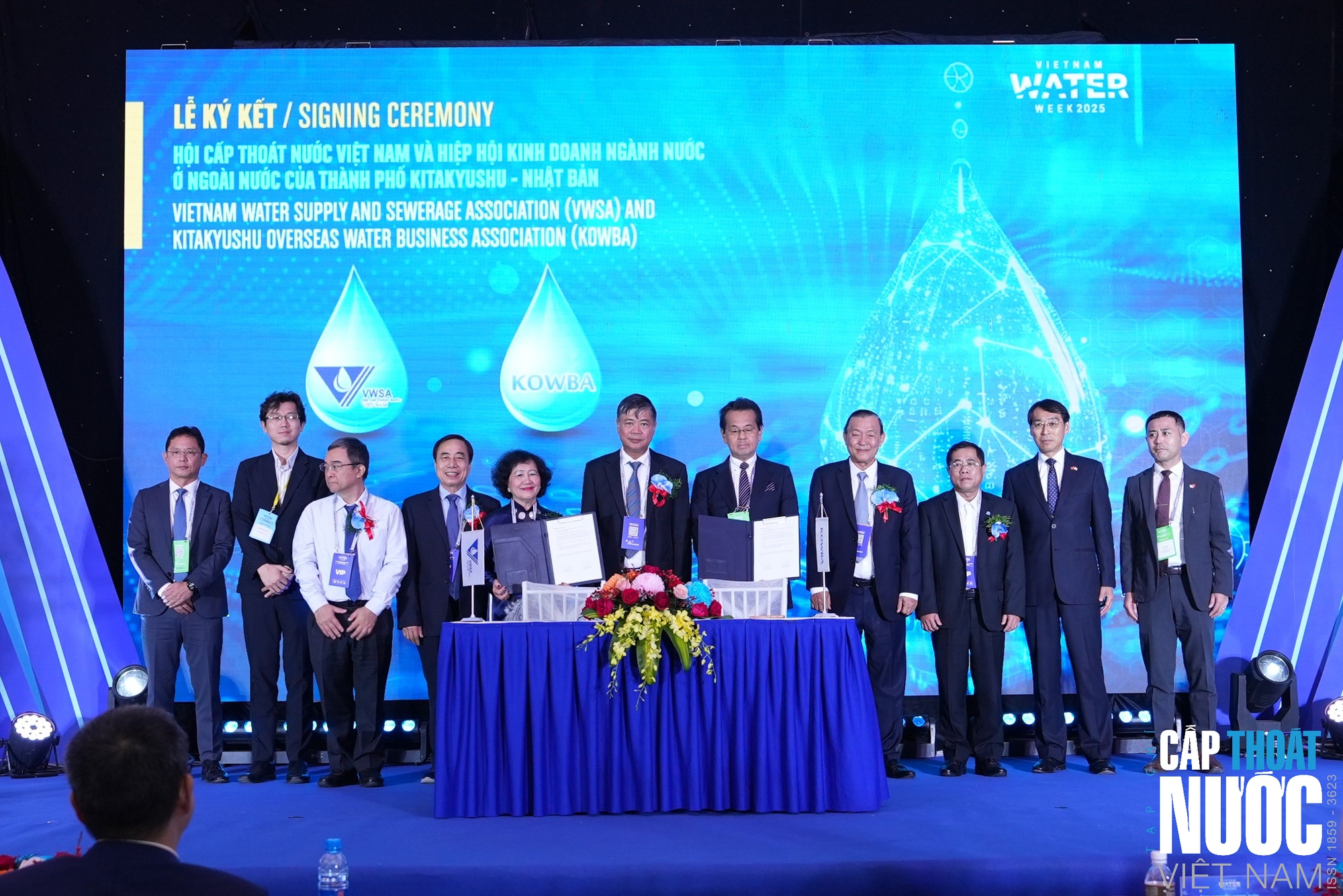Điểm nhấn trong Lễ khai mạc là Lễ ký kết giữa Hội Cấp Thoát nước Việt Nam và Hiệp hội Kinh doanh ngành Nước hải ngoại của Thành phố Kitakyushu (Nhật Bản).