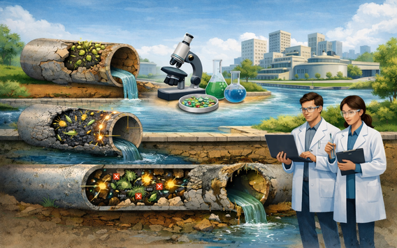 Nghiên cứu đề xuất lớp lót bê tông có bổ sung vật liệu dẫn điện (magnetite, acetylene black) nhằm thúc đẩy vi khuẩn sinh điện và oxy hóa sinh học H₂S. Thí nghiệm quy mô phòng được thực hiện với các cấu hình lớp lót khác nhau.