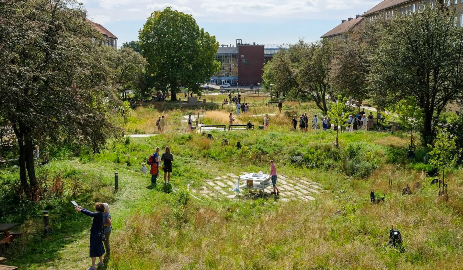 4. Copenhagen: Sử dụng các hồ điều hòa nổi, sử dụng chứa nước (hồ tạm) khi có mưa lớn, được xây dựng kết hợp với các công viên, không gian chung, công cộng, các khu vực wetland, ở những nơi có địa hình thấp trũng, khi mưa lớn, mặt sân, vườn trở thành hồ chứa tạm; có hệ thống cống ngầm xả chậm. Hồ điều hòa nổi được thiết kế đa mục tiêu (đa chức năng): bình thường là công viên/sân thể thao, khi mưa thành hồ điều hòa tạm. Giải pháp giúp giảm thiểu 70 - 80% thiệt hại ngập đô thị khu trung tâm, cải thiện cảnh quan, tăng khả năng thấm nước (giúp bổ cập nước ngầm), tăng diện tích không gian xanh + khả năng phục hồi đô thị.