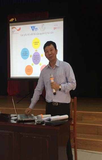 3 giảng viên của lớp đào tạo là: Giảng viên Đinh Quang Hiệp , Diệp Nguyên Thịnh và Trần Thị Lựu là những giảng viên đã được VWSA và GIZ-WMP cấp chứng chỉ giảng viên nguồn về Tài chính và quản lý tài sản.